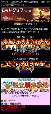 公式モバイルサイトタイアップ第1弾として【大人の歴史脳力検定】のレッドクリフ特集サイトがスペシャルページに追加されました!